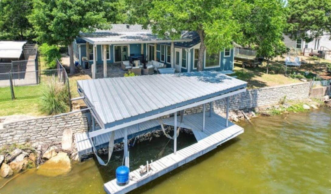 Beautiful Lake Front Home. This quiet, clean home is great for a quick get away. The completely remodeled Texas Classic is filled with decorations from the local area. Open kitchen with a serving bar, granite counter tops, wood floors and a full view of the lake from the kitchen. Great heating and air conditioning. Boat Dock available for the swimming and fishing. Granbury Square is a fun place to shop and Barking Rocks Winery is a very short walk away. Visit the Granbury City websit