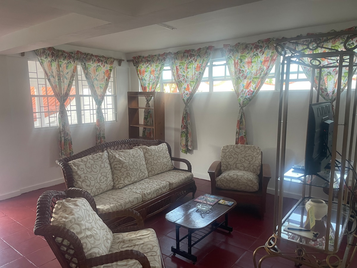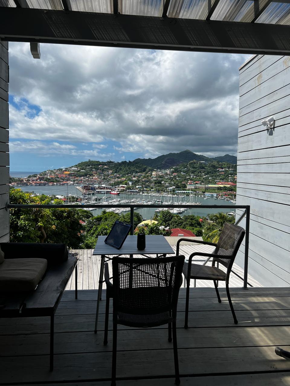 Also check SunnysideBBG Beach Suite 4 availability. Bright, large private studio, kitchenette , private bathroom. Complimentary breakfast less than 30 day stay. 1 week breakfast stays over 30 days. Balcony looks out to an amazing panoramic view of the sea. 5 min walk to Grand Mal beach. 5 min. bus to town and 15 min. bus ride to Grand Anse Beach. Walk 2 min to the jetty and watch the fishing trawlers unload their catch of Yellow Fin Tuna, Sword fish and many other big game fish