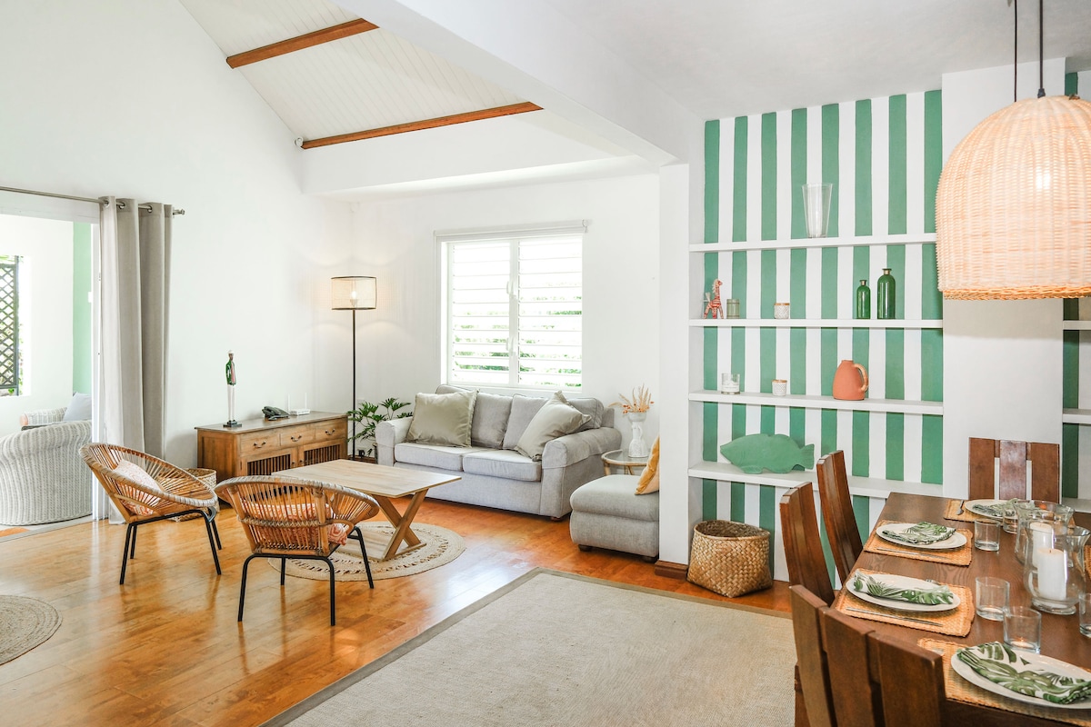 Appartement de 150m² - 3 chambres, style bohème chic, à 1 min à pied de la mer - Appartement moderne et décoré avec goût - Plage de La Cuvette accessible à 1 minute à pied - Pereybère et centre-ville de Grand Baie (supermarchés, restaurants, activités) accessible en 5 minutes - Piscine, Rooftop et BBQ communs - Cuisine entièrement équipée - Cafetière Nespresso - Wi-Fi très haut débit - Climatisation dans toutes les chambres - Parking privé - Assistance disponible 24/24