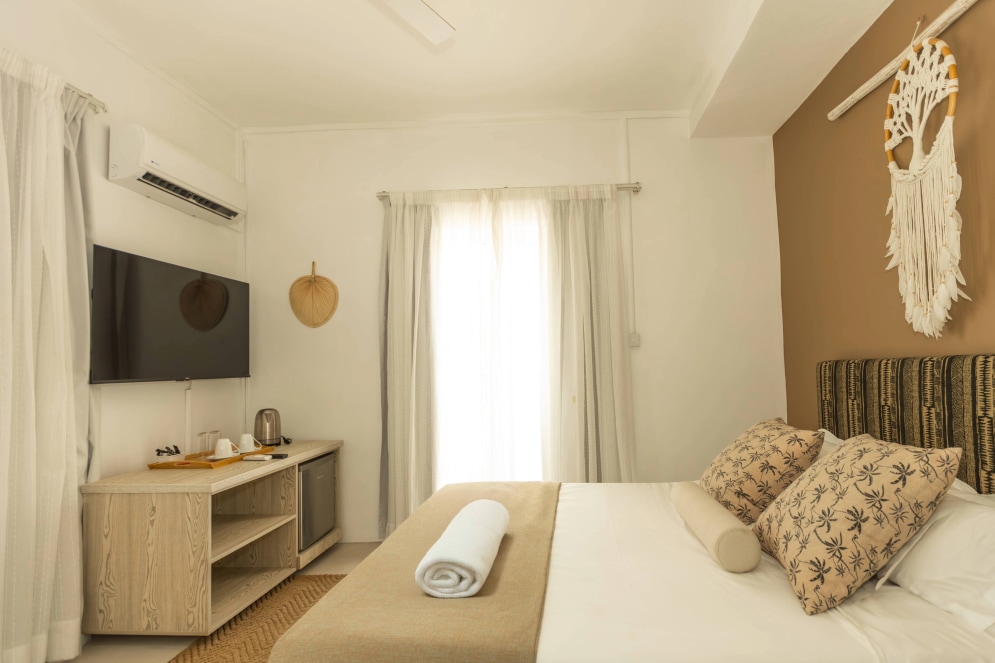 The villa offers an intimate and ultra comfortable experience. It is ideal for holidays as a couple, with friends, or with family. The garden and the swimming pool will invite you to unwind and embrace island living. Set just outside the tourist hustle and bustle, yet only minutes from the most cherished beaches and attractions, the villa offers a serene retreat where refined elegance meets privacy. With birdsong and warm breezes, the villa is a true haven of peace designed for your well-being.