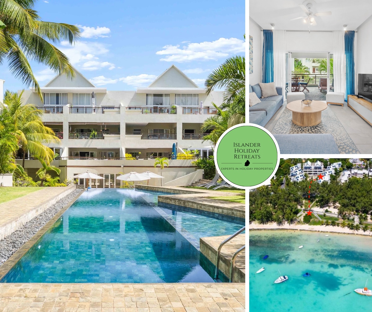 Ultra-luxury ground floor apartment. Sleeps 8. Very Well-positioned overlooking the stunning La Peninsula Pool. It compliments 3 bedrooms each with a private Bathrooms (3) and a sleeper couch. Sleeps 6 adults and 2 small children. Located in the North, in Grand-Baie, Mont Choisy, Le Parc, a 5-star Resort-style development, Short walk from Mauritius best swimming beach. This ground floor apartment is brand new( Jan 2020) and decorated by a leading international interior designer.
