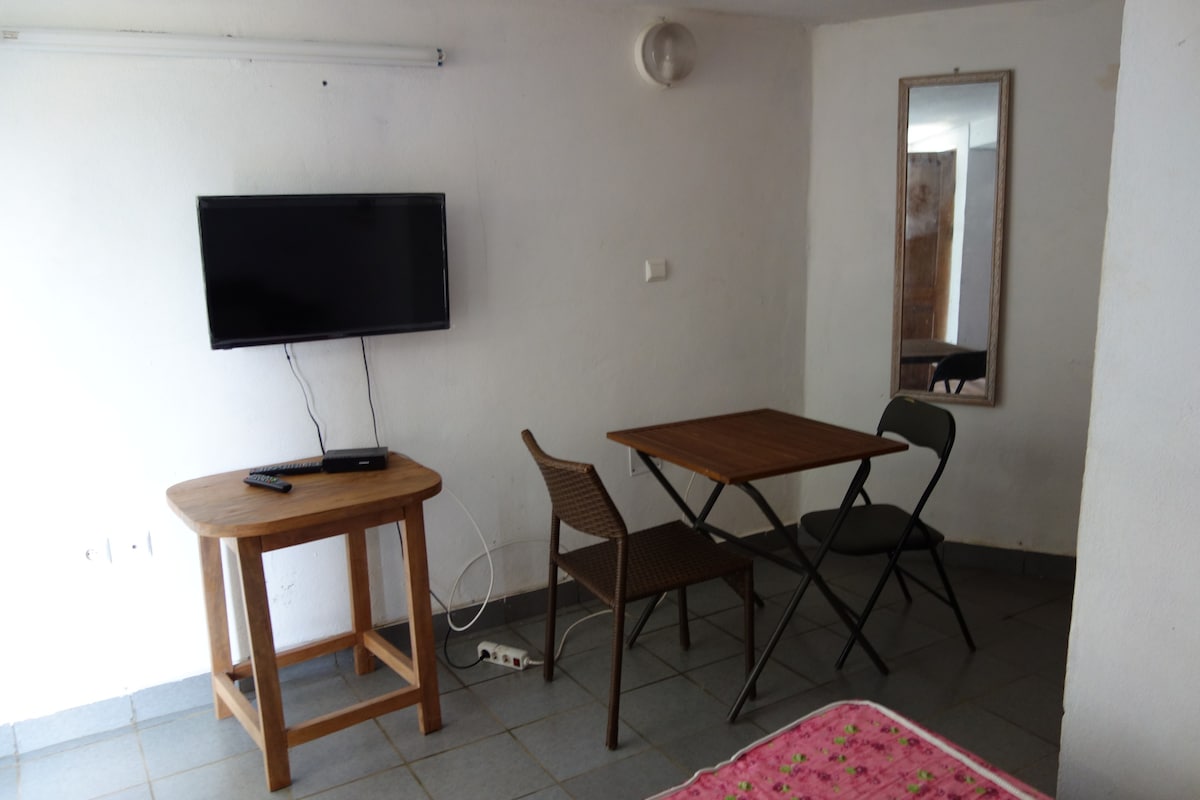 Bienvenue chez RKS - Résidence Kribi Soleil, Appartement "Ananas": un refuge paisible au rez-de-chaussée de la Résidence Kribi Soleil. Cet appartement offre une chambre confortable, un salon avec canapé-lit, une cuisine moderne et une terrasse privée. Profitez de la tranquillité, de la proximité des chutes de la Lobé et de la plage de Kribi. Wi-Fi gratuit, climatisation et parking inclus. Réservez dès maintenant pour une escapade mémorable !