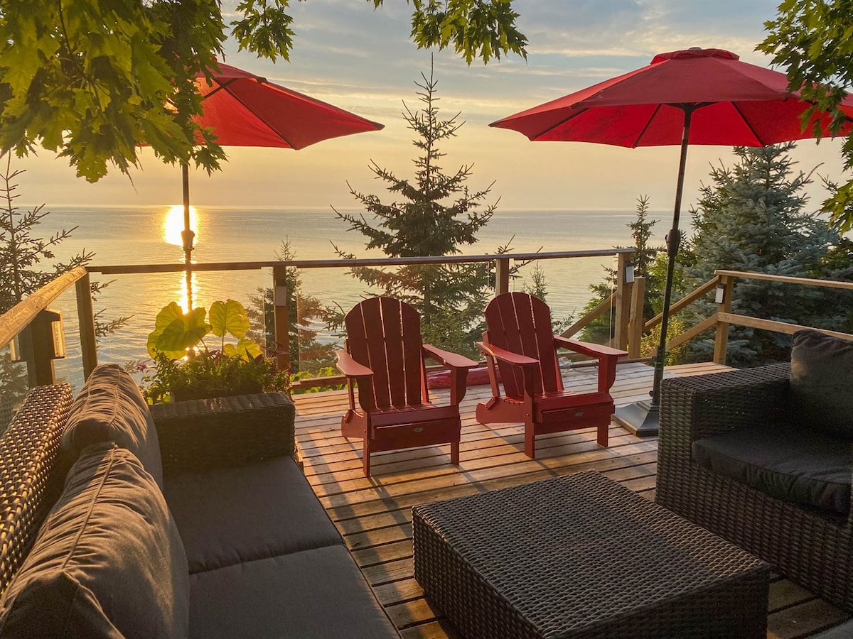 Find Bluecoast Bunkie nestled in the trees on a cliff overlooking Lake Huron. Fall asleep to the sound of the waves lapping on the shores and wake up to the choir of birds singing while enjoying a cup of artisan coffee or tea on your private deck. Take a stroll down long stretches of shoreline, seldom visited by others. Lounge on the private beach or beside the indoor salt water pool. Finish the day on the lookout while witnessing the most spectacular sunsets this world has to offer.
