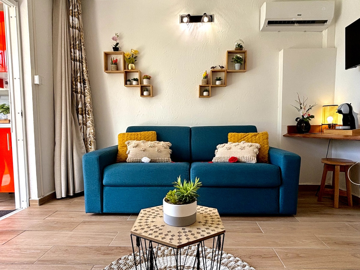 Relax in this quiet and stylish bungalow. Furnished, air-conditioned, equipped with terrace and garden that can accommodate 2/3 people, Located in the town of Grand Bourg, in the heart of lush vegetation, you enjoy direct access to the beach of Folle Anse, Double bedroom, living room with sofa bed, shower room / separate toilet, fitted kitchen on terrace, dining room on private garden, parking, Privileged access to the swimming pool of KAWANN village.