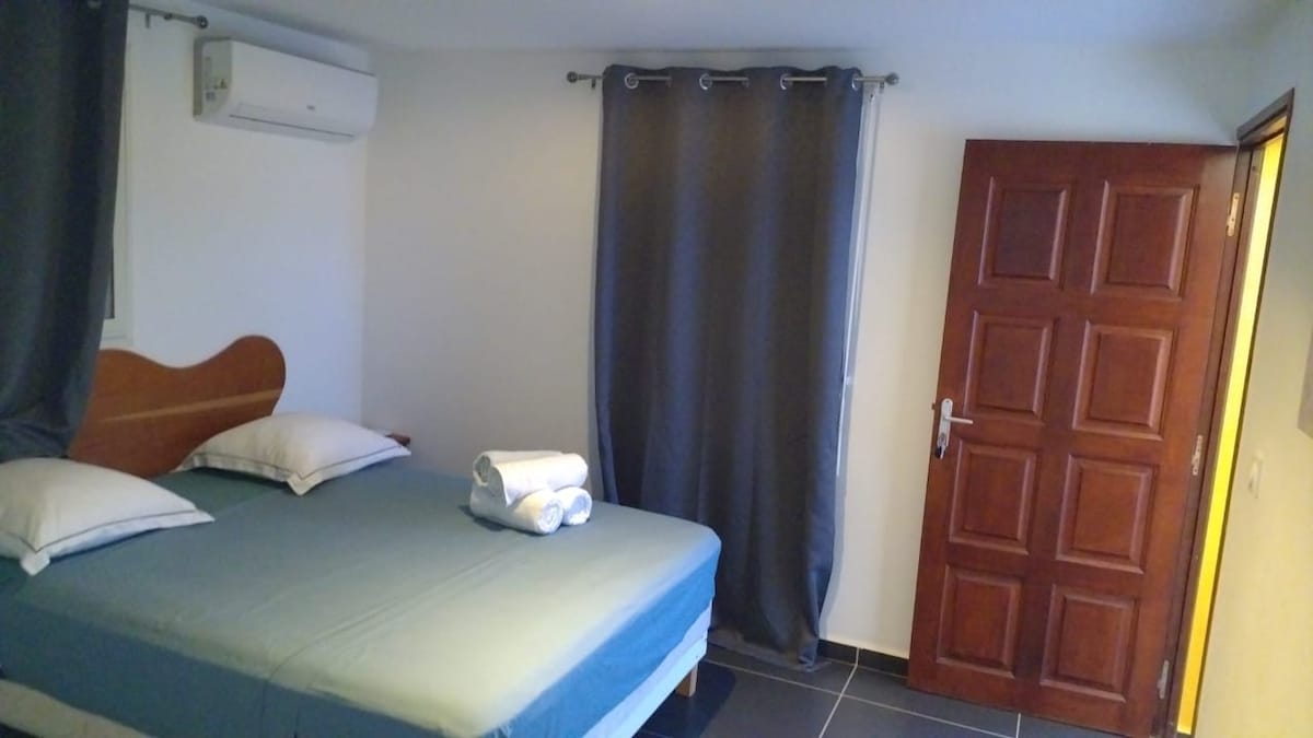 Bienvenue dans notre Bungalow " BungaLéo" Détendez-vous dans notre charmant logement climatisé entièrement neuf. Situé dans un lotissement calme A 400 mètres de la plage a pied , accessible par un petit chemin A 3km de la gare maritime. Départ de sentier de randonnée de la maison Lit Queen Size de 160×200. La douche est extérieure face à un petit jardin tropical en toute intimité. Le jardin est à partager avec les propriétaires, sans vis-à-vis. Nous disposons de la Wifi