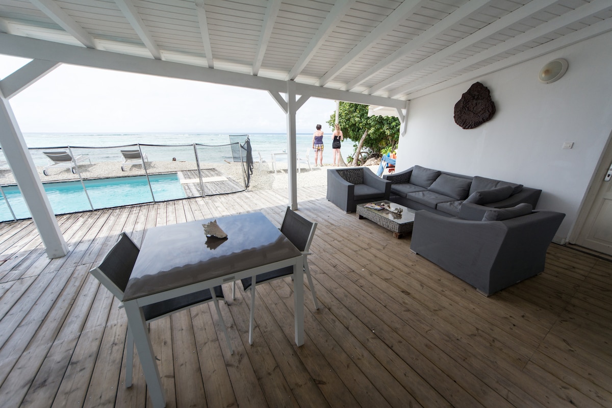 Vous aurez les pieds dans le sable sur un rivage privé peu fréquenté et une vue imprenable sur la mer des caraïbes. L'accès est aisé aux proches commerces et centres d’intérêts. Vous pourrez pratiquer le snorkeling, laisser les enfants jouer dans le sable, préparer le BBQ. La maison totalise 150 m2 (70 de terrasse et 25 de mezzanine équipée d'un filet de catamaran dont les enfants raffolent). La terrasse donne sur la plage, dispose d’une grande table, d'un hamac et d’un coin apéro proche du BBQ.