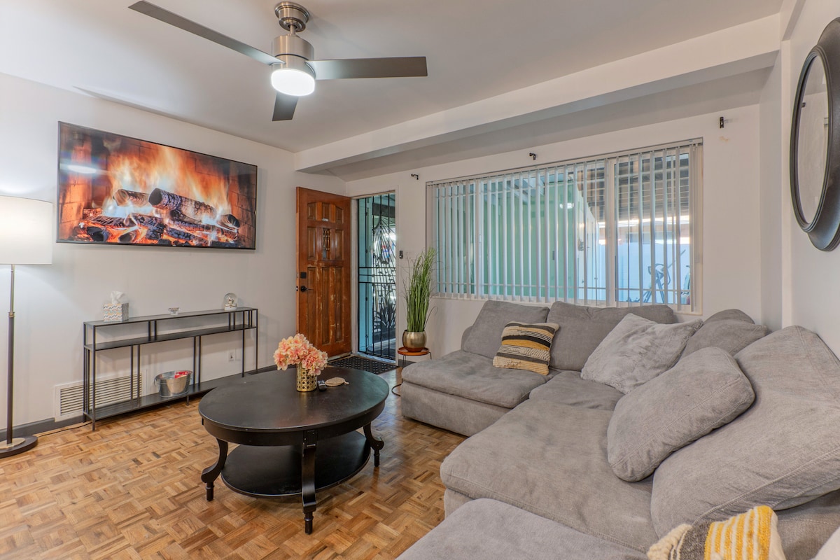 Discover Uptown Phoenix and its vibrant charm! Nestled in the historic district, our property offers a serene escape in the heart of the Valley. This spacious, private studio features a resort-style outdoor retreat, a shared courtyard, a gourmet grill, two outdoor dining areas, and a cozy fire pit to unwind. Inside, relax in a comfortable living room, enjoy meals or card games at the dining table, and retreat to a glamorous bedroom for the perfect end to your day.