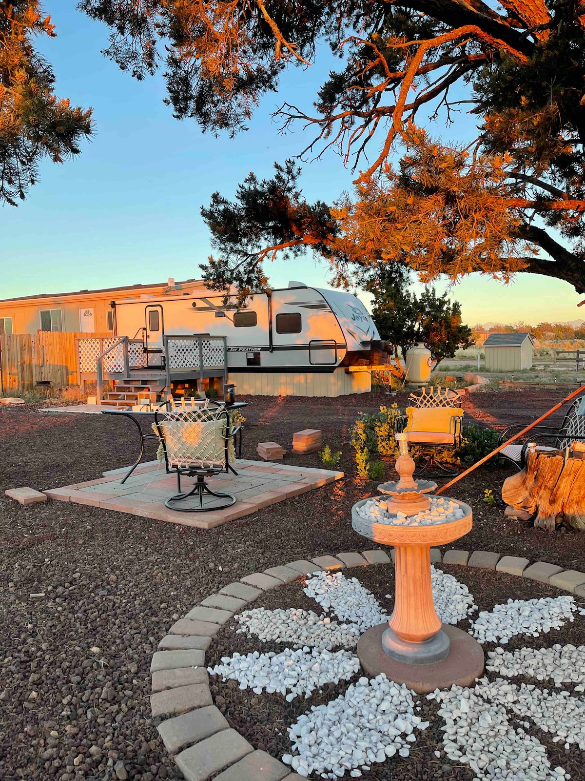 You'll have a great time at this adorable and conveniently located place to stay nestled in Grand Canyon junction. Only 25 minutes from Grand Canyon 30 from Williams and 50 from Flagstaff. Enjoy beautiful sunsets and amazing star gazing right from the property. There is a gas station, restaurants, gift shop, a rock shop, an air museum and Raptor Ranch within walking distance. This travel trailer has a beautiful floor plan, air conditioner, heating system, private patio, and private entrance.