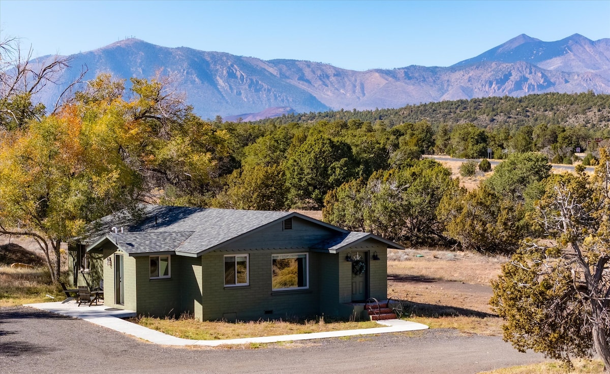 Have relaxing fun at this quiet country cottage. Built in 2023, it sits on 10 acres, and we, the hosts live on site in a separate home about 150 feet away. We do not have pet or cleaning fees. You'll enjoy quiet surroundings with big skies and beautiful mountain views all around from your private deck. We're located only eight miles north of Williams and about 1 point 5 miles off the highway to the Grand Canyon, all on paved road, and just a 45 minute drive to the South Gate to the Canyon.