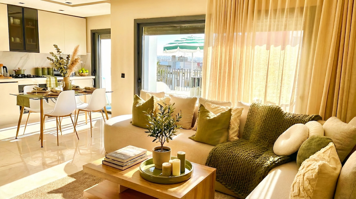 Bright and modern apartment, ideal for couples, families or small groups of up to 4 guests. It features 2 bedrooms, 2 bathrooms, and a spacious open-plan living room that flows seamlessly onto a large terrace with an open panoramic view, perfect for relaxing or dining outdoors. Located in the heart of Casablanca, close to the Marina, Old Medina, Central Market and Hassan II Mosque, it offers comfort, tranquility and an ideal base for exploring the city.