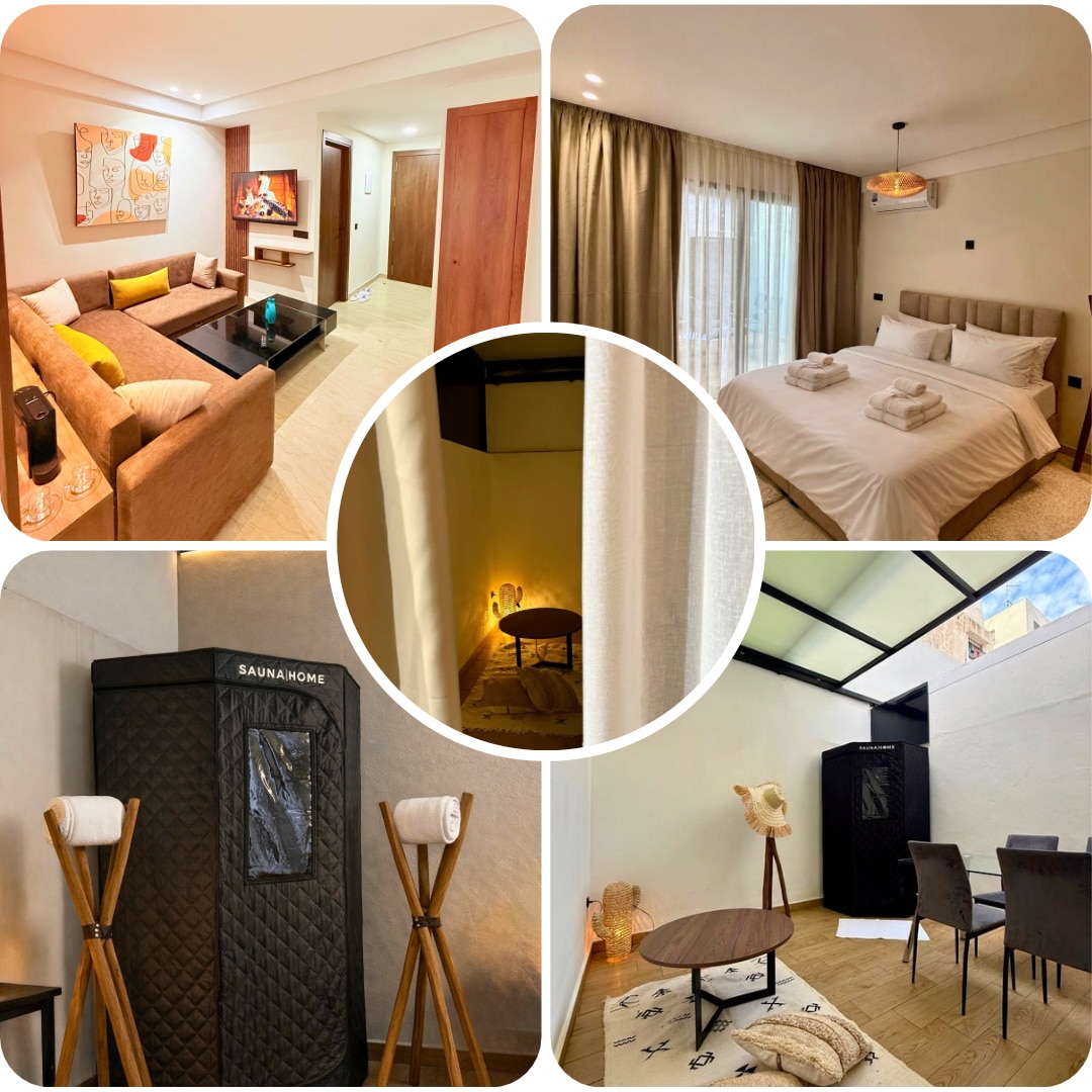 Discover our sunny 2-bedroom Airbnb in Casablanca's 2 Mars neighborhood! This property includes one free day at the gym, so you can stay active during your stay. Enjoy natural light and top-notch amenities, including a gym and spa services by Esthetique Spa. Please note that Spa services are available at an additional charge, with rates depending on the selected treatment. Our central location offers easy access to the city's dining and shopping. Book now for an unforgettable experience!