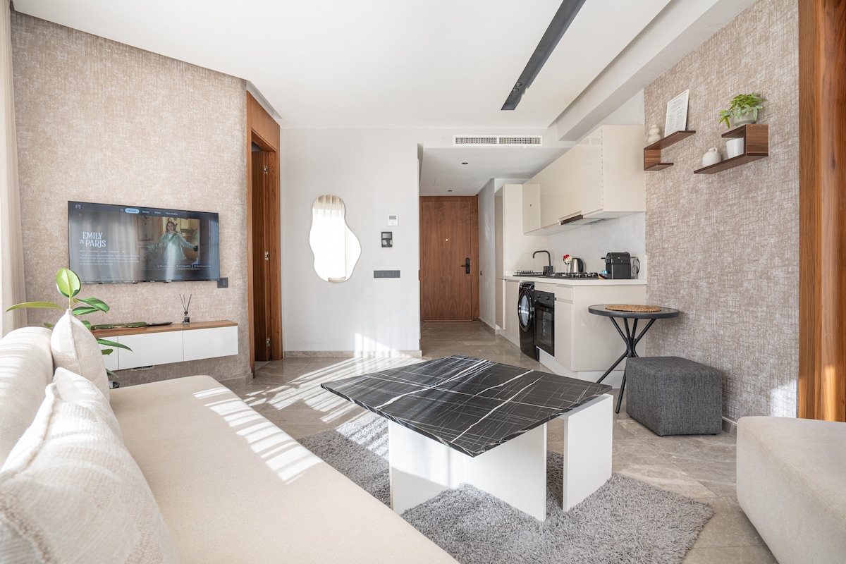 Butterfly 703 🦋, un havre de paix où l'élégance d'une résidence moderne s'allie au confort des hôtels 5* en plein cœur de Casablanca ! Relaxez-vous dans un salon spacieux au design moderne, équipé d'une Smart TV 55’ avec Netflix et IPTV pour des soirées de détente absolue. La chambre, véritable nid douillet, vous promet des nuits paisibles et réparatrices ☁️ Depuis votre balcon privé, admirez les splendides couchers de soleil sur la ville, rendant chaque moment de votre séjour inoubliable ! ✨