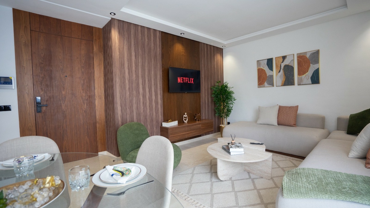 Perla 403 💎 , un havre de paix où l'élégance d'une résidence moderne s'allie au confort des hôtels 5* en plein cœur de Casablanca ! Relaxez-vous dans un salon spacieux au design moderne, équipé d'une Smart TV 55’ avec Netflix et IPTV pour des soirées de détente absolue. La chambre, véritable nid douillet, vous promet des nuits paisibles et réparatrices ☁️ Depuis votre balcon privé, admirez les splendides couchers de soleil sur la ville, rendant chaque moment de votre séjour inoubliable ! ✨