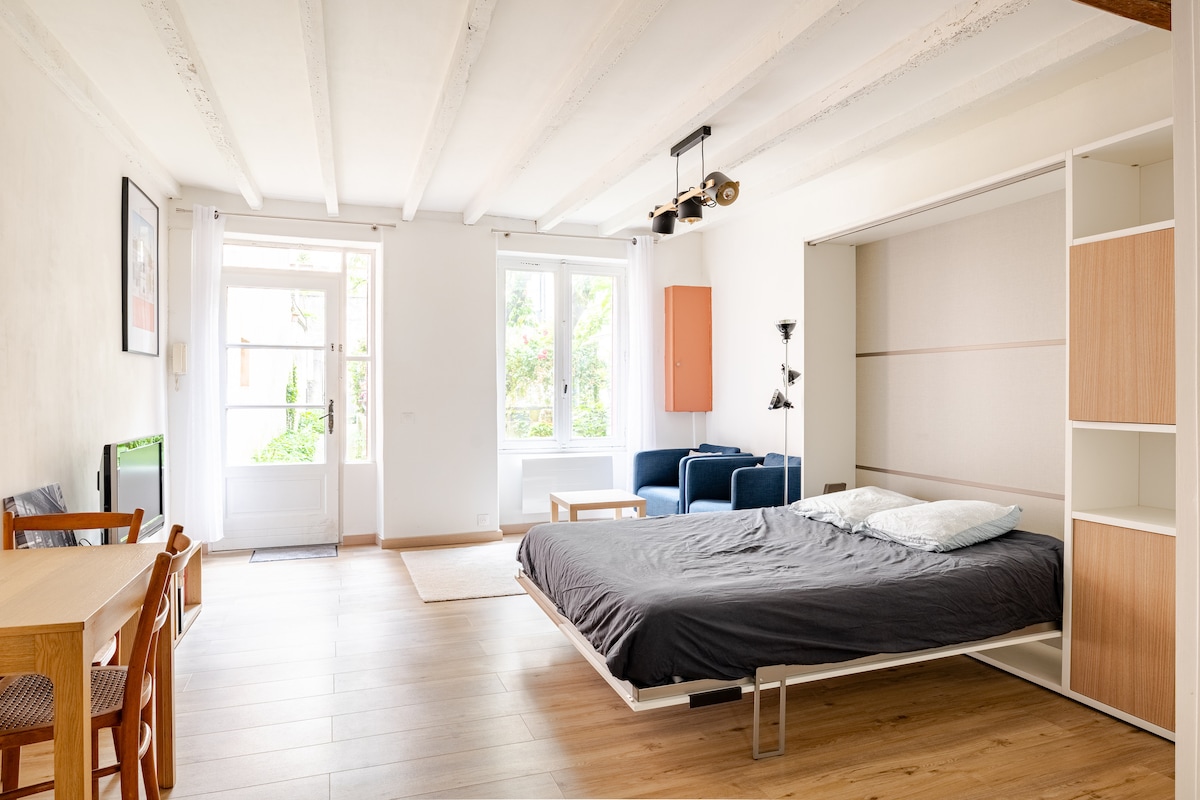 Niché dans une cour donnant sur une impasse, c'est le calme absolu pour ce charmant studio aux poutres apparentes, totalement rénové en 2023. Dans les pentes de la Croix-Rousse, à 5 minutes de la tête d'Or et des transports, venez profiter d'un emplacement idéal pour partir à la découverte de Lyon. Son jardin sous le cerisier sera idéal pour vous ressourcer après une journée riche en émotions !