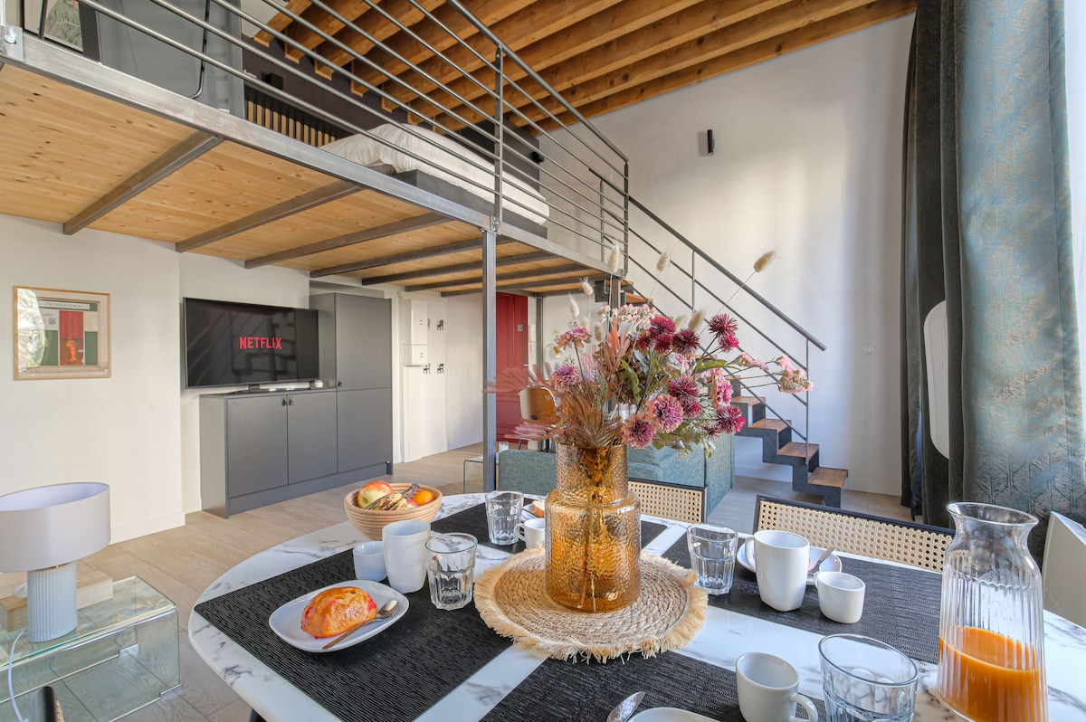 Welcome to your next urban getaway, in the vibrant Croix-Rousse district of Lyon! This exceptional apartment, freshly renovated and meticulously decorated, opens its doors to you for an unforgettable stay. Magical View of Lyon: Perched in a privileged location, this apartment offers a spectacular view of the entire city. Jacuzzi Duo: Imagine yourself immersed in a relaxing bath with a Japanese atmosphere. Our space is designed for unparalleled moments of relaxation.