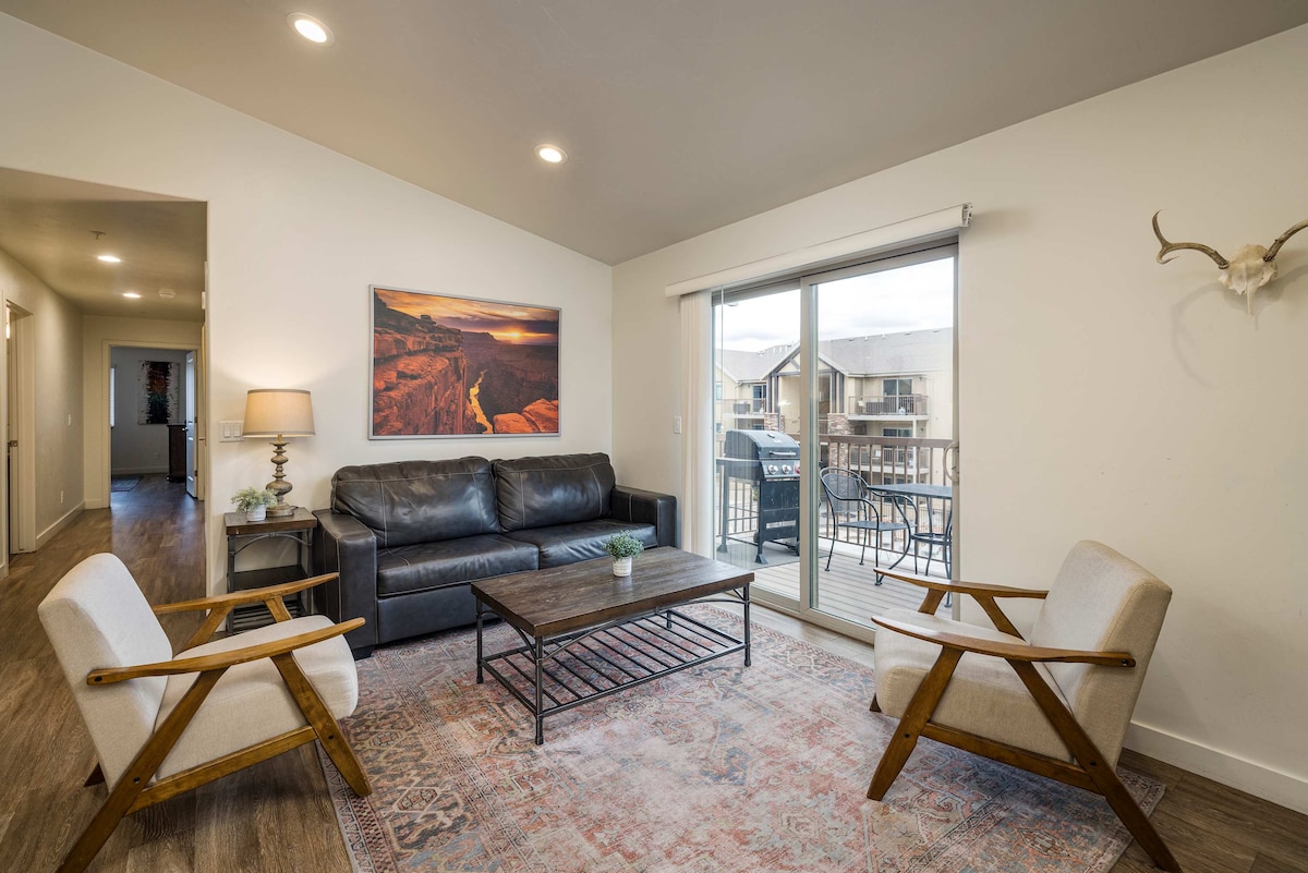 Welcome to Hidden Canyon Getaway, your home away from home. Just five miles south of downtown, this bright, beautifully decorated townhome combines the warmth of a personal residence with the amenities of a resort — offering the perfect balance of relaxation and adventure. With 3 spacious bedrooms, 2.5 baths, a cozy loft lounge, and a two-car garage for all your bikes, jeeps, or adventure gear, this home was designed for families, couples, and explorers who crave both comfort and convenience.