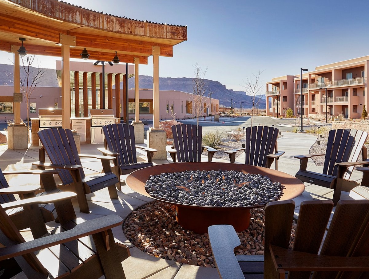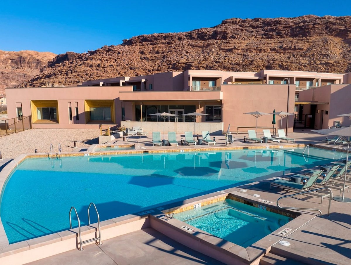 2Bedroom/2Bathroom sleeps 6 Gather for adventures in Moab, Utah. You'll stay near some of the best national parks in Utah, including Arches and Canyonland National Parks, where you can hike, bike, and stroll among sandstone arches and dramatic canyons. And, when you're done for the day, head back to this stylish resort where you can relax in the hot tub, cool off in the pool, make s’mores at the fire pit, or watch the sun set over the red rock formations.