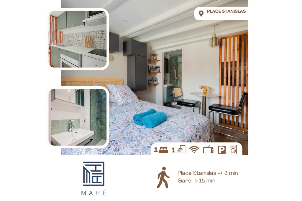 Take advantage of this prime location to visit Nancy on foot during your stay. Parking is free and easy to access, which is a great convenience in this area. Place Stanislas is 150 metres away on foot, and all the city's attractions are less than 5 minutes' walk away. All-comfort accommodation, fully renovated in 2024, in a quiet, secure residence. - Queen Size bed 160 x 200 cm - SMART TV with TV channels and application - Fibre and WIFI