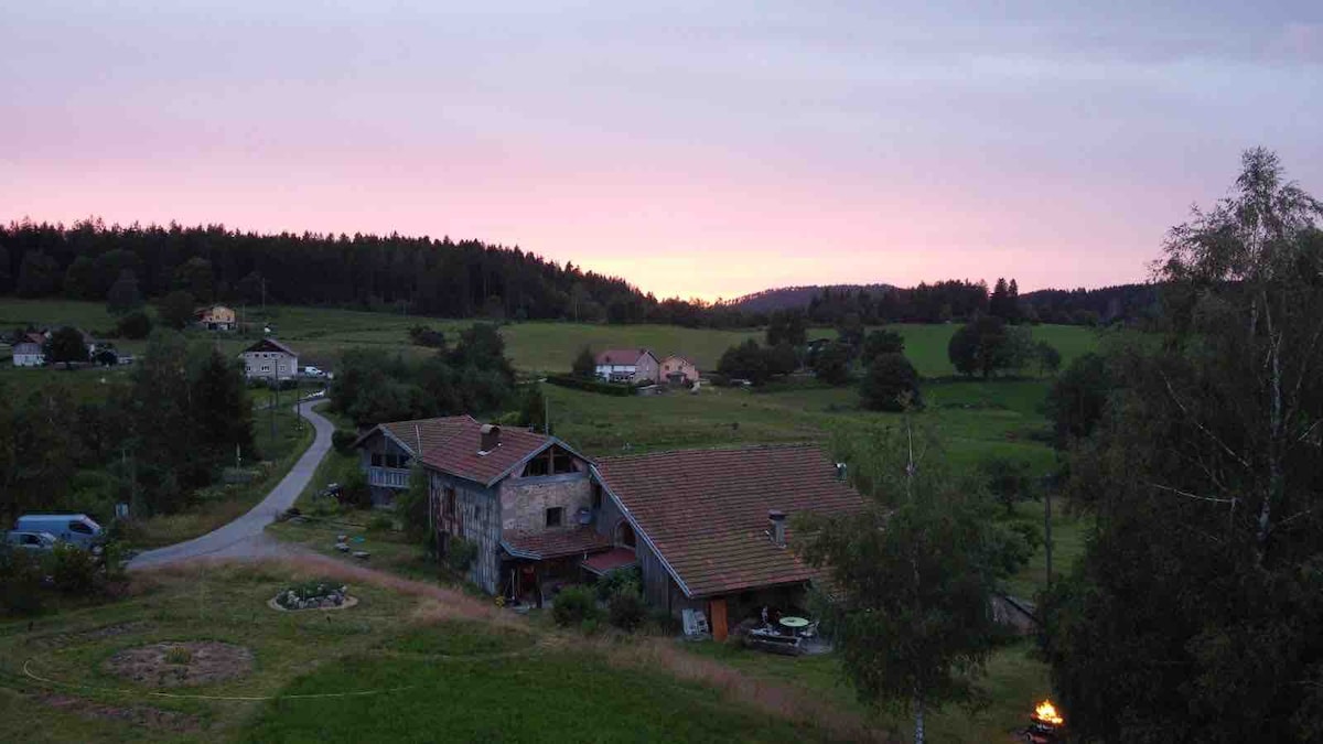 Bienvenue ¨à l'Ombre du Noyer¨, entre Pâtures et Forêts, sous l'écho du Brame en saison, le gîte de Carine&Thierry vous propose un nid douillet à plusieurs facettes : une cuisine propice aux repas d'amoureux et une nuit proche des étoiles. Au fil de votre séjour, vous saurez découvrir et goûter aux charmes d'instants variés, suggérés par des aménagements chaleureux, fonctionnels et uniques. Nature et intimité, vous offriront le repos propice à un séjour de bien-être à la Petite Lièpvre.
