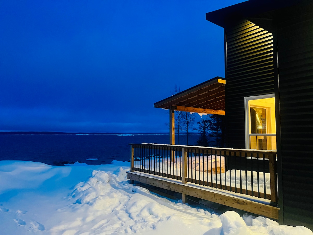 Nestled in the shelter of beautiful Wiseman’s Cove minutes from Twillingate, our large, comfortable, and clean A-frame home sits on the oceanfront and features direct access to water for shoreline fishing or floating/rafting. Our cozy home features stunning views with an array of floor-to-ceiling windows looking onto the water and surrounding forest areas, outdoor firepit, indoor electric fireplace, spacious bedrooms, fully loaded kitchen and dining area, and centralized air for cooling/heating.