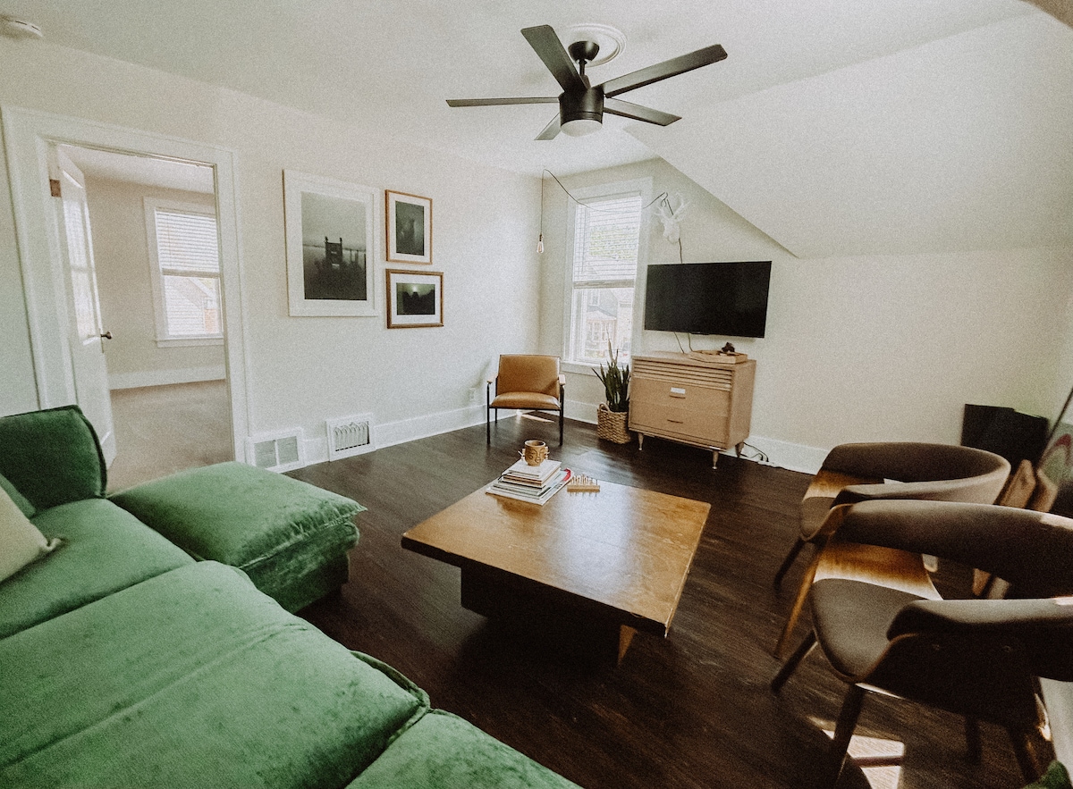 Make yourself at home in this stylish, newly renovated, sun-filled upper unit home in eastown Grand Haven. All the basic amenities you'll need, and free parking. It's less than 20 minutes to walk downtown, with lots of shopping and food options, and an 8 minute drive to the beach (40ish minutes if you feel like walking). Grand Haven is the best little beach town. We love it & hope you fall in love too! NOTE : WE’RE ON A BUSIER ROAD, SO TRAFFIC AND PEDESTRIAN NOISE CAN SOMETIMES BE A BIT LOUDER.