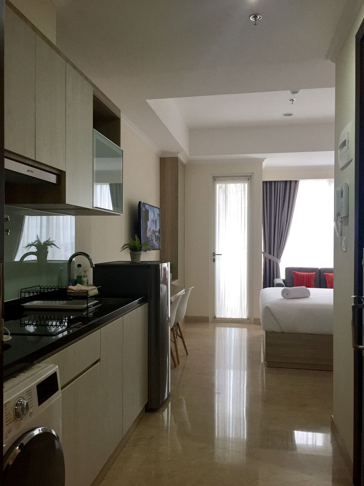 One bedroom apartment,100mbps WiFi speed. New bathroom with hot water, washing machine, kitchen with gas stoves, microwave,fridge,rice cooker,toaster, utensils &a sitting room that can be used as additional bedroom with android TV providing Netflix & Disney.The Apartment is within Thamrin City Shopping Complex. Please note that we are in a tropical country so some type of insects are common. I employ a professional regular pest control in my unit, but you may still see occasional cocroaches