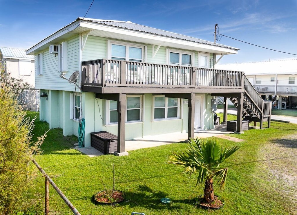 Great Camp in a great location, across from the beach with a gulf view from the upper deck. Three bedrooms and three bath camp. We have a Boiling Pot & charcoal BBQ Pit. Fully stocked kitchen with a stove and fridge. We have a separate laundry room, a pantry, and an extra fridge. It's right across from the beach public access with an upstairs deck facing the water. Pet-friendly property $200 cleaning charge for pets as I have life threatening asthma.