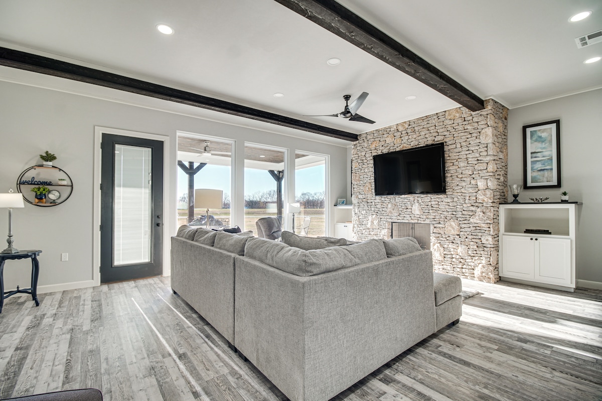Bring your family or friends for a Grand Lake O’ the Cherokees vacation featuring some of the best lake views in the state. This roomy, newly renovated, 4 bed, 2.5 bath stylish lakefront home nestled on a 1 acre lot in the woods of the Ozark foothills is about as close as you can get from the OKC or Tulsa area. Over 100 ft of lake frontage includes a private partially covered dock with swim deck and jet ski lift as well as hot tub in this private Grand Lake oasis!