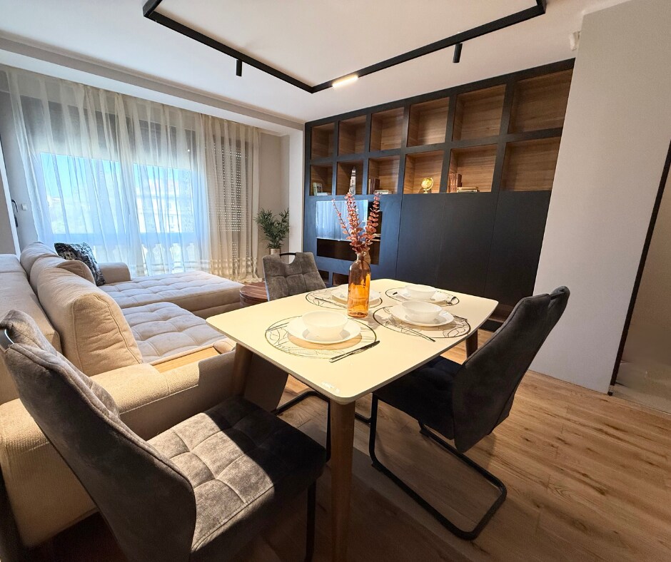 Място, където можете да почивате сами или с Вашето семейство, можете да отседнете и ако сте по работа в града, а защо не и да съчетаете работа с почивка/разходка. В близост е до Гранд мол и автогара, само на 20 минути пеш от центъра на града, 50 метра от автобусна спирка, хранителен магазин в сградата, свободно паркиране в квартала. Апартаментът разполага с всичко необходимо в кухнята: фурна, котлони, съдомиялна, хладилник, кафемашина, кана за топла вода, посуда, AC и TV във всяка стая.