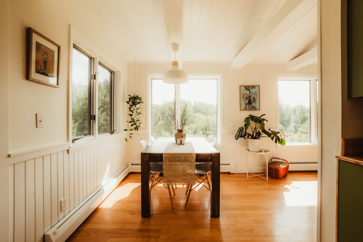 Welcome to Hawkweed House, your peaceful getaway in Grand Marais. The perfect place to explore and enjoy the North Shore, we are located 10 minutes from downtown Grand Marais on a quiet wooded 3 acre lot at the edge of a wildflower meadow. The whole house has recently been updated and remodeled and is filled with light and greenery and offers lots of privacy. This cozy home offers a balance of open common areas, private relaxation spaces, and outdoor spaces to enjoy during your visit.