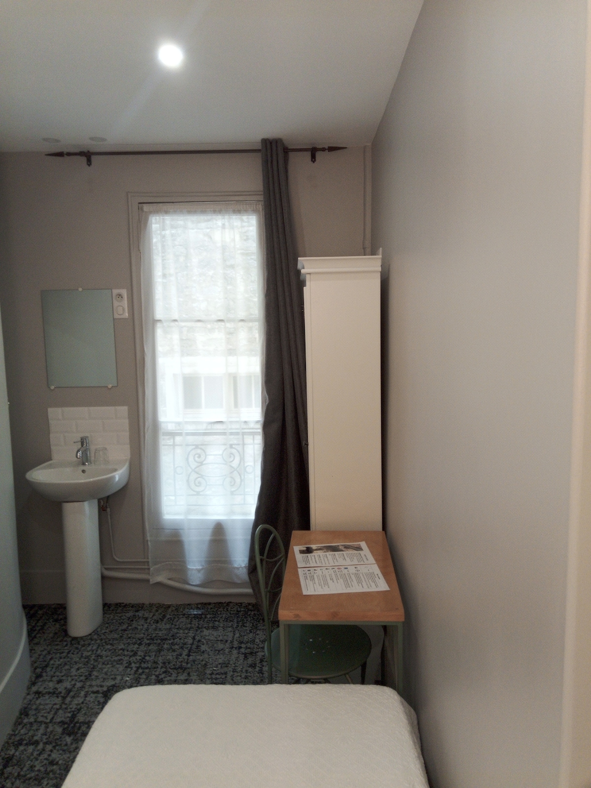 Chambre individuelle au 2ème étage sans ascenseur. Grand lit 140x190 cm. Monuments et édifices touristiques pas loin de l'hôtel : Sacré Cœur (15mn par bus) Arc de Triomphe (32mn bus) Tour Eiffel (30mn bus) Opéra Garnier ou L'église de la Madeleine (15 mn bus) Place de la Concorde (25mn bus) L’Olympia (15mn bus) lignes Bus passant à proximité : 31, 28, 163, 54, 74, 21, 94 Stations de Métro à proximité : Brochant (L13) LA FOURCHE (L13) PONT CARDINET (Train L) ou (Métro L14)
