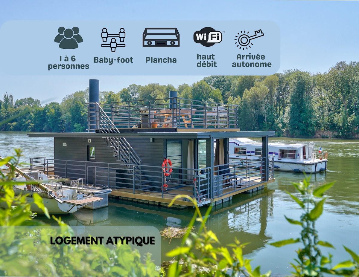 Looking for an unusual getaway just 30 minutes from Paris? Welcome aboard the House-Boat: a floating haven where the water gently rocks you and the view of the Seine offers a truly timeless experience. Enjoy the rooftop terrace for barbecue evenings, play foosball, and create unforgettable memories with family or your loved one (Romantic Package available). Also discover a charming town center with restaurants, terraces, and shops. Book now and experience life on the water!