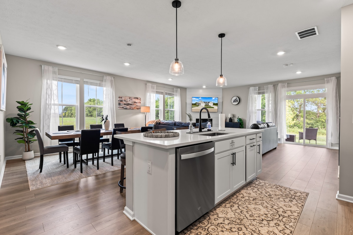 New, open-concept brownstone with 2-car garage is 2.4 miles to Grand Park Sports Complex and walking distance to "Restaurant Row" & Grand Junction Park. With quick access to Hwy 31 & 32, you are minutes from shopping at Clay Terrace, downtown Carmel or Noblesville with a multitude of dining options in between. Perfect if you're looking for a comfortable place to stay, when not watching a game at Grand Park or attending a local event/wedding. Read captions for more property info! (Sleeps 6)