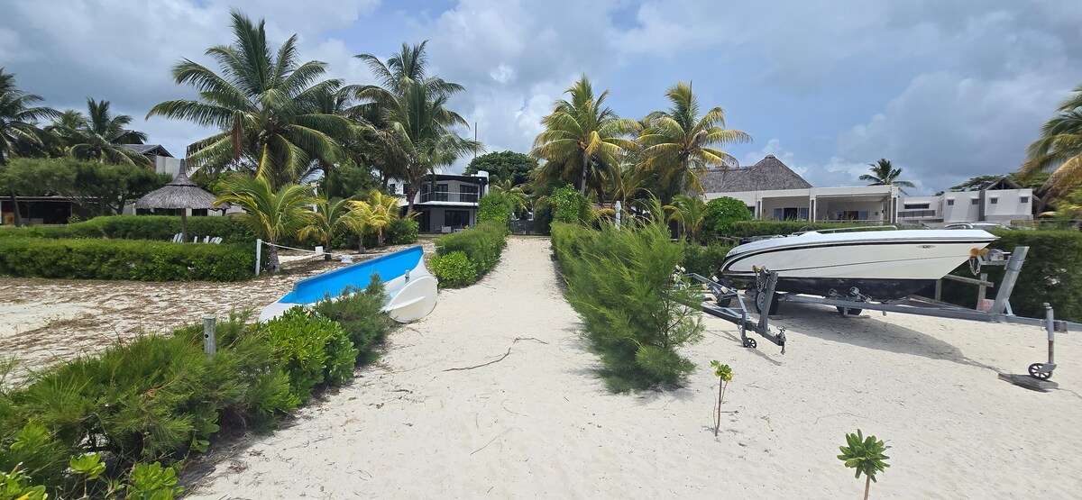 Offering breathtaking and picture perfect view of the lagoon, beach and island of the South East of Mauritius, this luxury beachfront apartment is amazing for a great holiday with family or friends. Modern style furniture and decor, featuring 3 comfortable bedrooms with ensuite bathrooms, a spacious living area. Providing guests with a private garden where they can relax and enjoy a quiet evening enjoying a delicious barbecue, after spending the day lounging around the shared swimming pool.