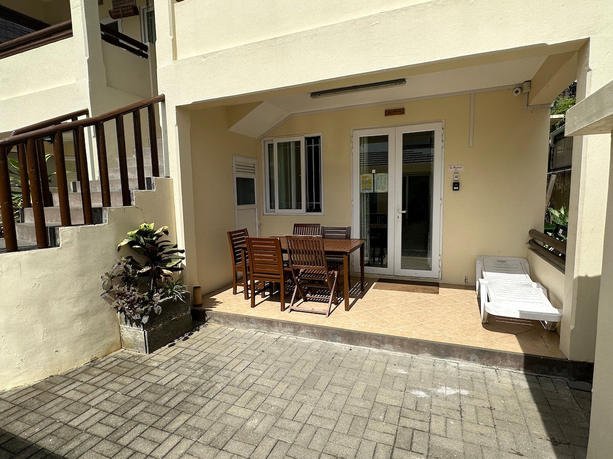 Have fun with the whole family at this stylish and spacious apartment of 2 bedrooms (1 king and 1 double), and then have some rest in the terrasse enjoying a tropical garden and the sea breeze. Very close to the airport (15 mins by car), and at walking distance (10 minutes) to the beautiful beach of Blue Bay. Don't want to cook? Come and enjoy the delicious food at our restaurant "The Bamboo" next door (delivery is also possible).