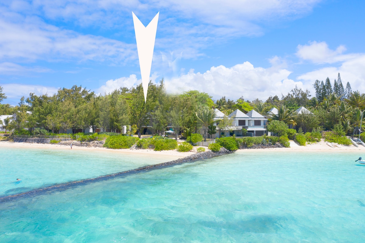 8 minutes from the airport (ideal for departures/arrivals) Our space is originally designed and offers a cosy atmosphere. It is an invitation to cocooning. Facing the lagoon, with extraordinary views of the sea, the sunrise for those who wake up early and also the public beach, this stunning Villa will accommodate up to 6 people in its 3 bedrooms, and its private pool. While remaining calm to discover the charms of Mauritius and also to relax.