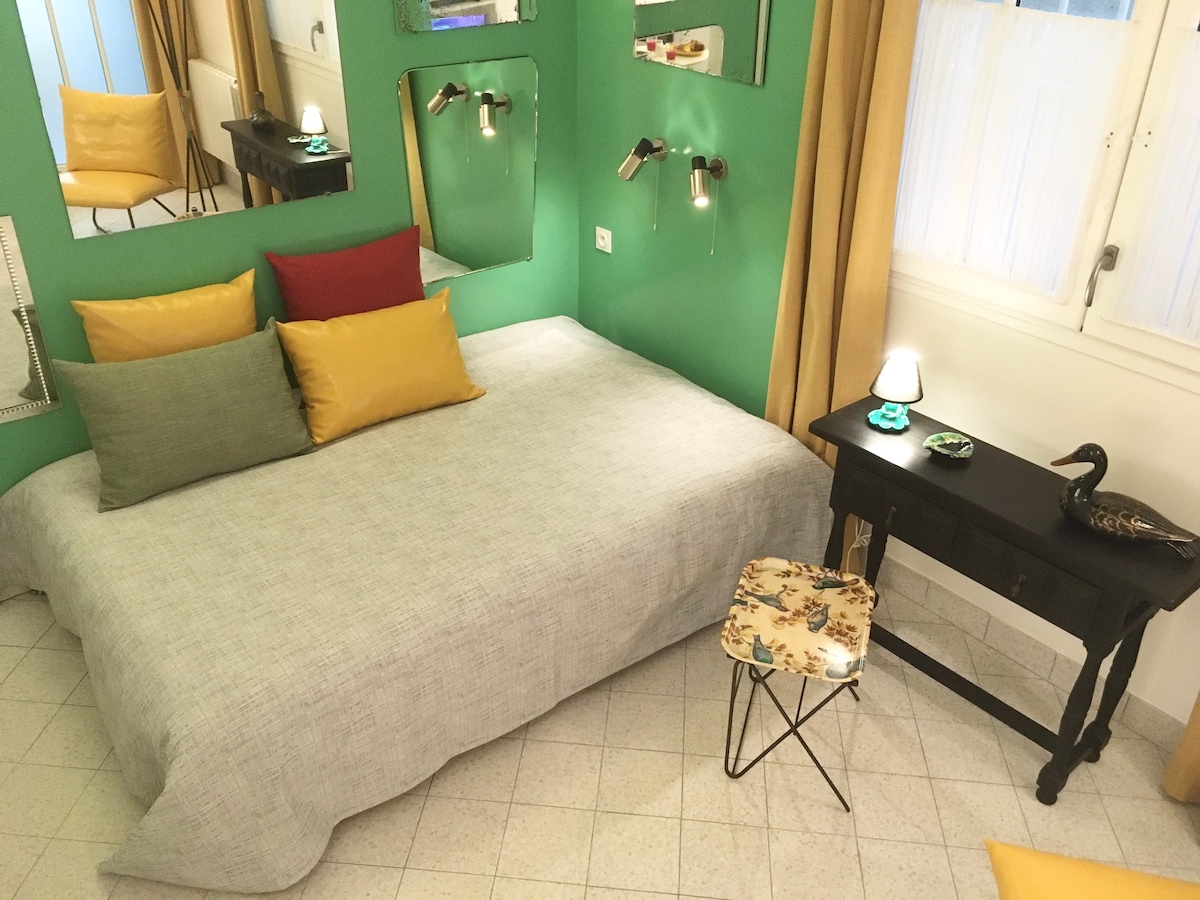 This quiet apartment, decorated with taste and designed with care, is located in the heart of the haut marais. With a high ceiling, and beautiful view over a charming courtyard, it really feels like home. The apartment is located near the trendy restaurants and cafés on rue de Bretagne, the Enfants Rouges covered market and it’s delicious food stands, and the fashion stores and museums of the marais district.