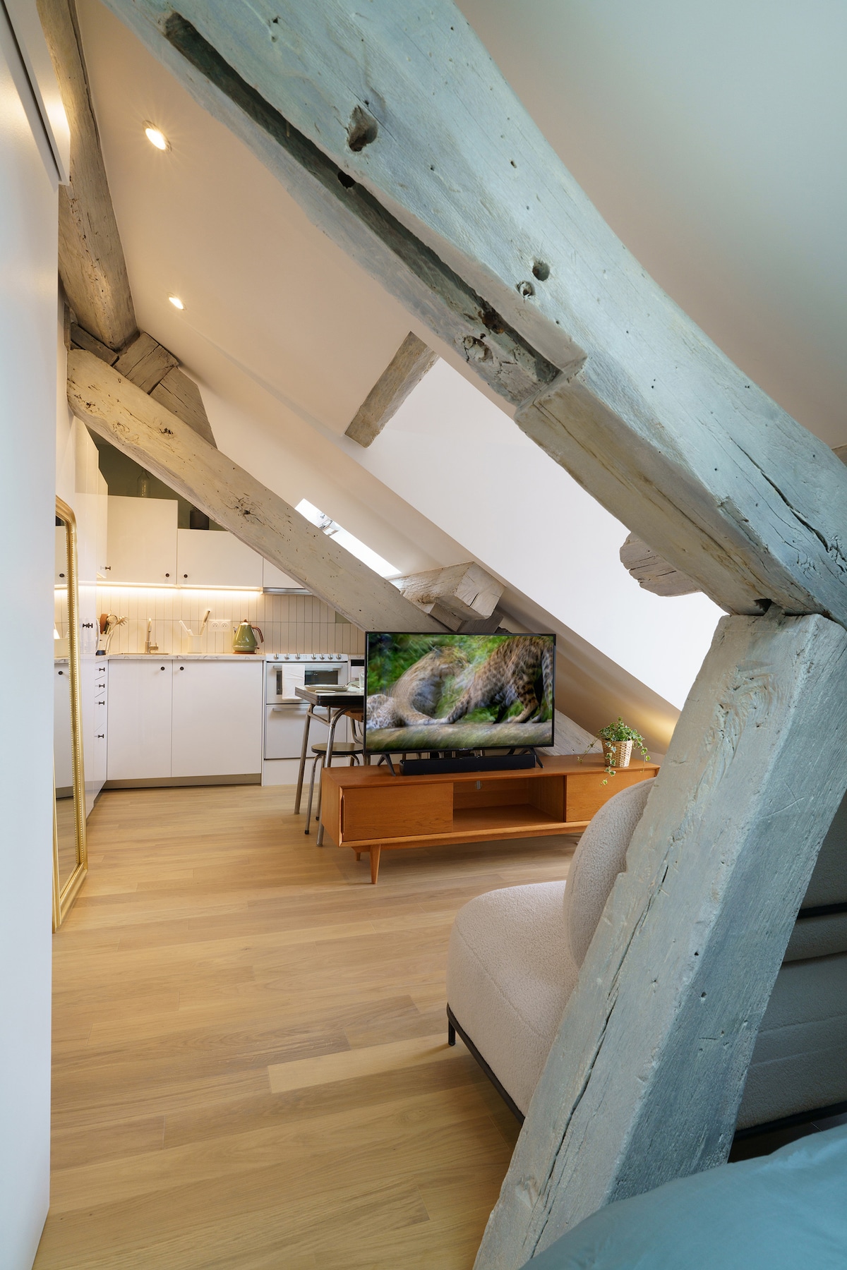 Au cœur de Paris, superbe studio pour 2 personnes avec lit double et literie haut de gamme. Climatisé et refait à neuf par un architecte au sixième et dernier étage (accessible par ascenseur jusqu’au 5e étage depuis septembre 2025) d'un immeuble historique de Paris datant de 1789. Proche de Châtelet, dans le célèbre quartier Montorgueil à Paris. Ce logement unique est proche de tous les sites et commodités.