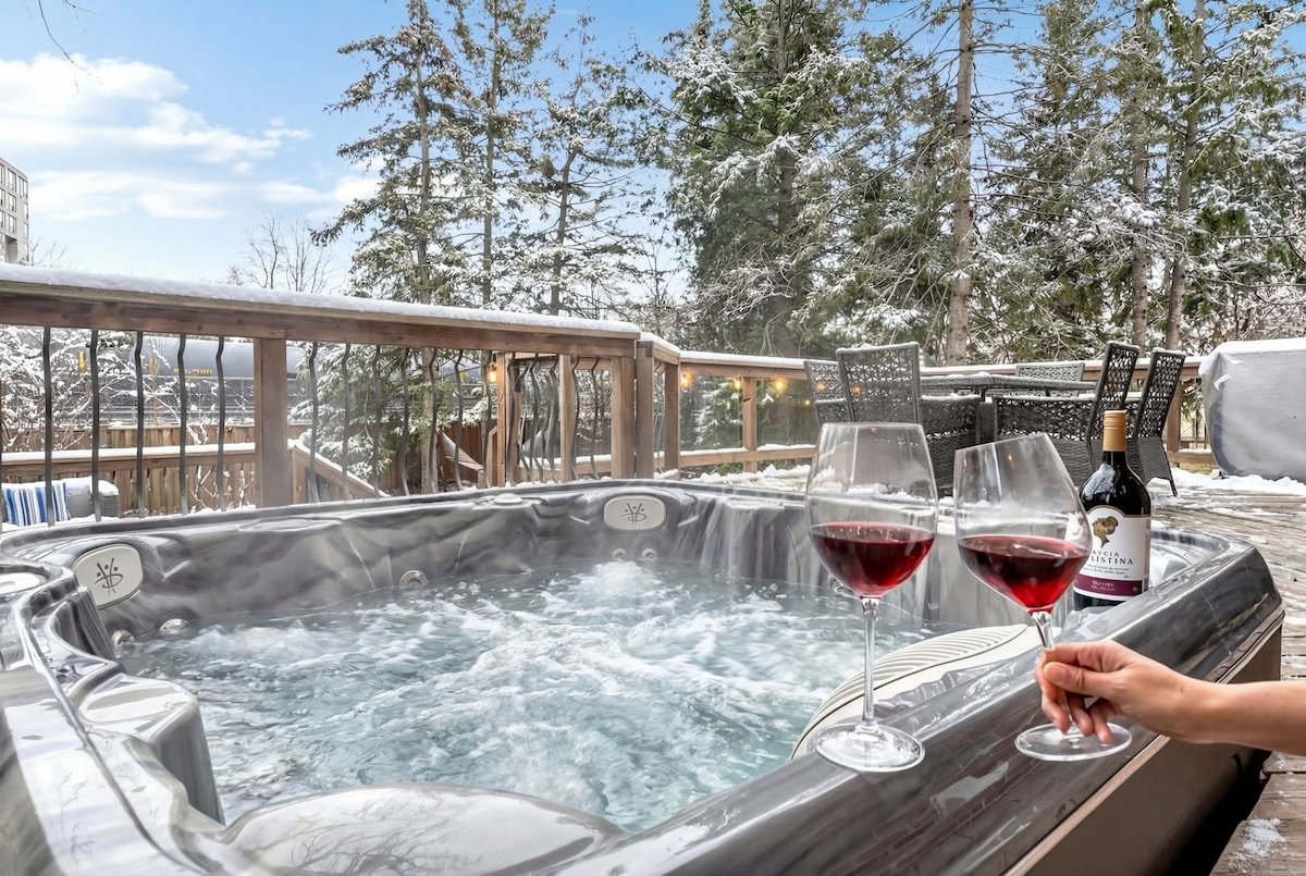 Experience luxury and tranquility just outside Dundas! Situated minutes from local golf courses, waterfalls, trails, biking routes and the Dundas Valley Conservation Area. This 2-bedroom sanctuary features King-sized beds, boasts 12-Ft ceilings and an indoor fireplace, offering elegance and comfort. Enjoy the spa-like bathroom with its heated floor, large tiled shower and dual rainfall showerheads. Unwind in the cozy living area or step outside to the patio and make memories by the campfire.