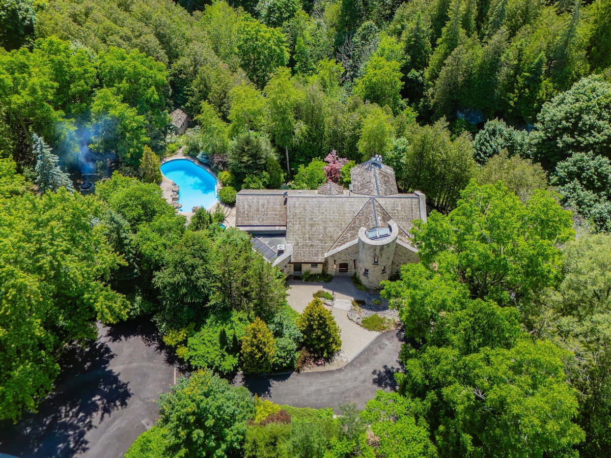 Relax and unwind at The Porch. Enjoy your romantic getaway. Watch the sunrise with a coffee on your private deck. You'll love this country escape with modern amenities. This 1830's Log Cabin has unique charm and warmth and is located on the Niagara escapment. Close to many golf courses and conservation areas. Dance and star gaze in this out of the city getaway. The secluded hottub is 30m from your door inside the barn. 420 and LGBTQ+ friends welcome.