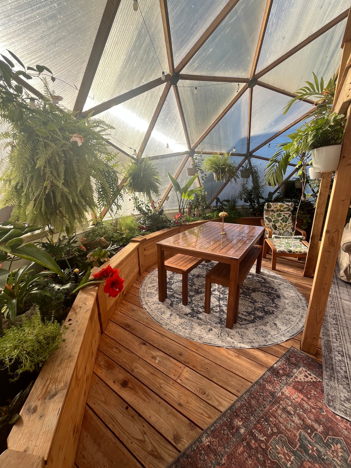 Jungle Dome on a farm in Burlington! Enjoy a tropical stay in our 500 square foot geodesic dome “glamping” greenhouse dwelling! Complete with a fish and turtle pond and filled to the brim with tropical plants! Designed to be a tropical vacation getaway when you can’t get away to the tropics! Situated on a 5 acre animal farm where guests can feed and interact with goats, horses, highland cows, sheep, pigs and poultry. An Animal Lovers Dream!
