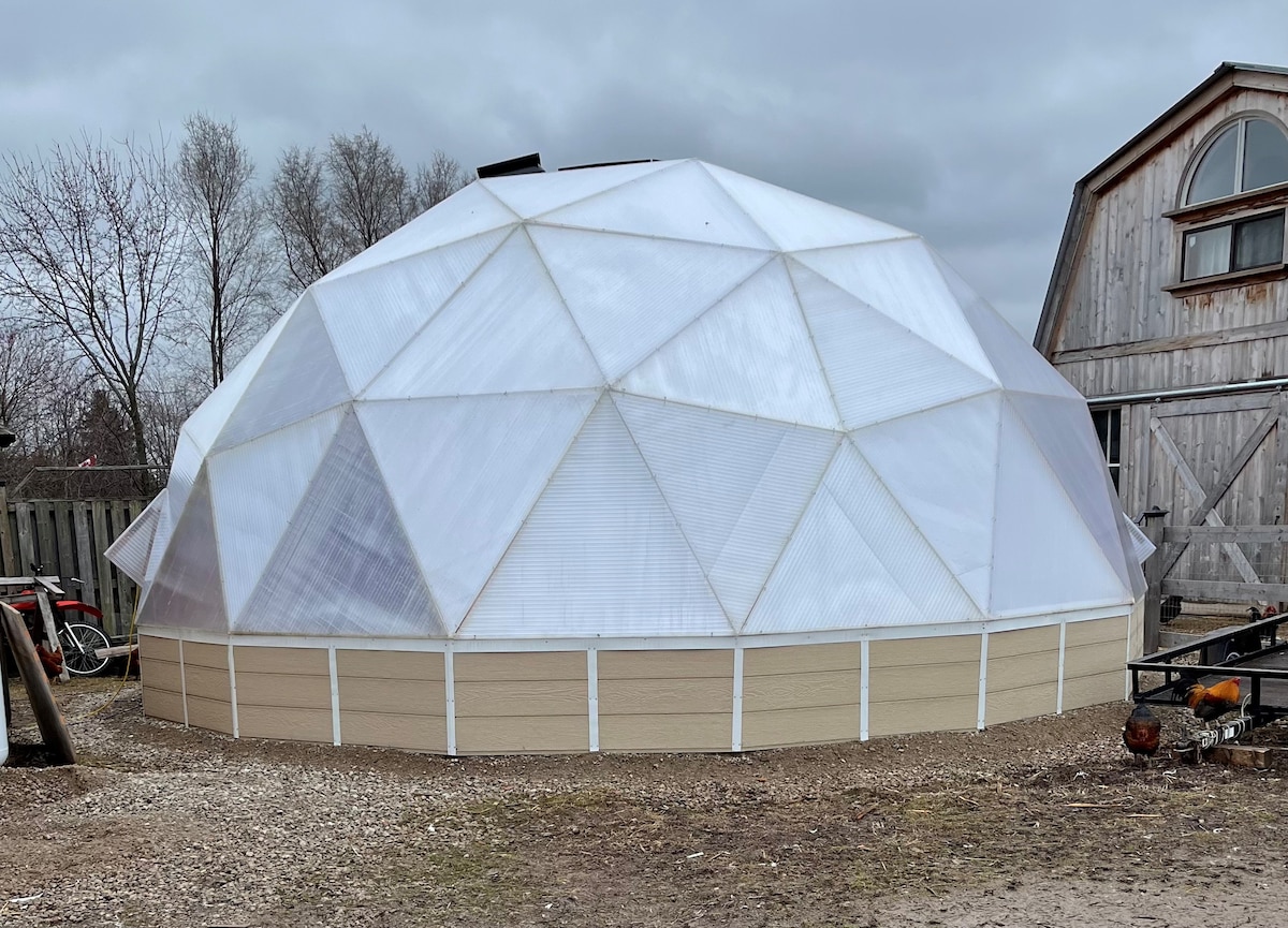 Whether you are looking for a romantic getaway for two, a solo remote work week in solitude surrounded by nature, or a family adventure, this 4-season geodesic dome is just the right place. Explore picturesque trails of Scanlon Creek Conservation Area, enjoy inground pool in summer, experience breathtaking sunsets over the farm fields, the starry skies by the bonfire, mesmerizing dance of fireflies in June, and let the frogs and crickets lull you to sleep in the place where time stands still...