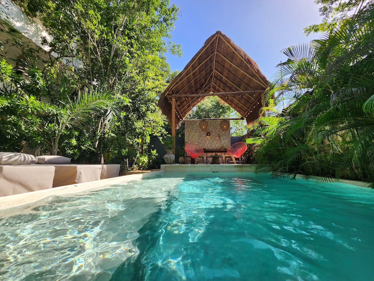 Experience the epitome of Tulum-style elegance at our Bohemian Chic Residence with style, comfort, and convenience. TEMPLIA is a unique, luxurious 2BR/2BA home with a private pool, outdoor hot tub, and award-winning Mayan-inspired design with fully equipped kitchen, concierge service, fast WiFi, and any additional service needed. Discover a harmonious blend of luxury and comfort perfect for travelers who value design, privacy, and quality.. Unforgettable moments await in refined Tulum living!