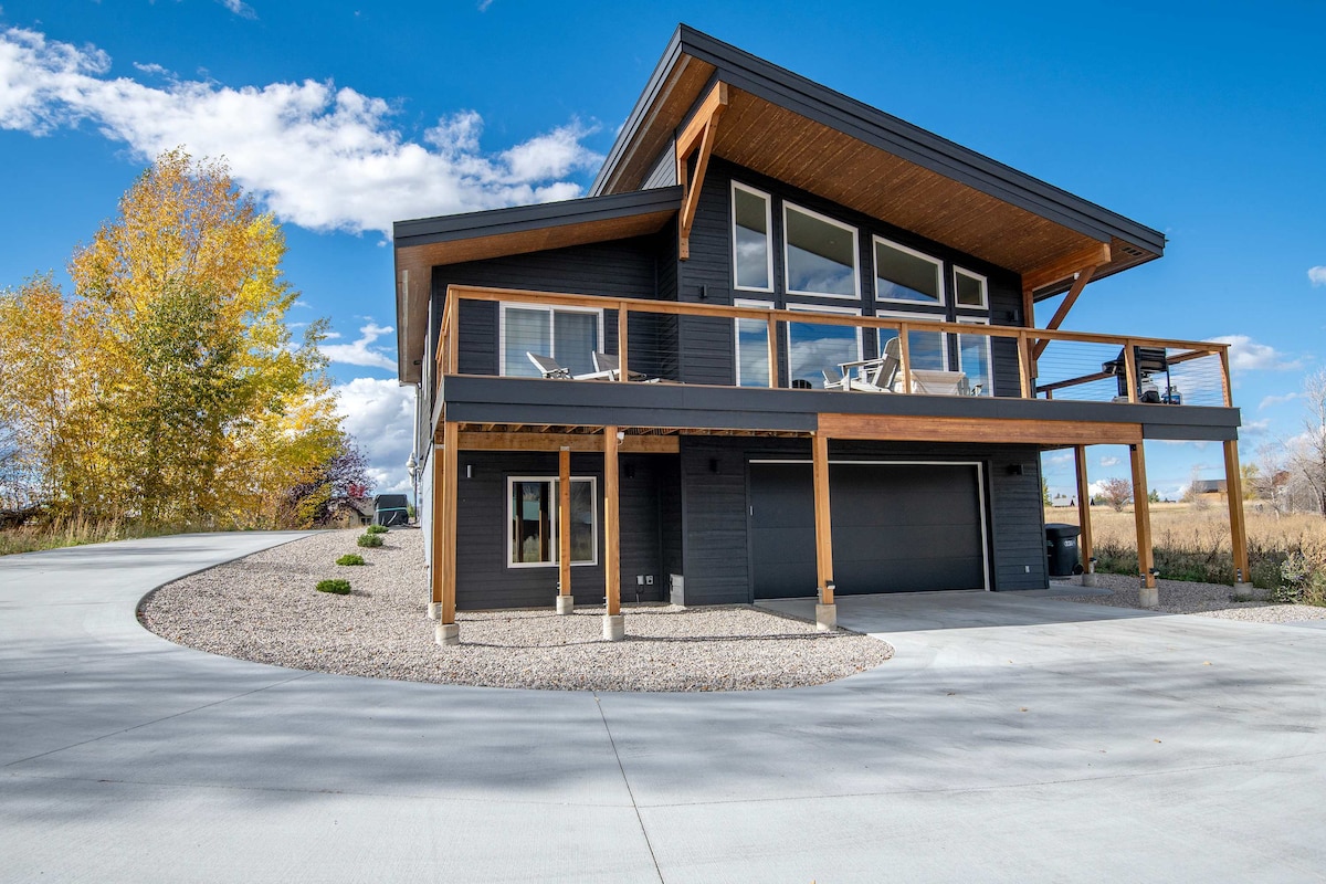 The Aspen Grove house is a modern/rustic home with a cabin feel. Nestled at the bottom of Pine Creek Pass, 4 miles west of Victor, Idaho. The neighborhood is secluded and quiet. You can walk out the front door for a beautiful view of the Grand Tetons and amber ways of grain. The home is naturally cool in the summer and cozy in the winter. The windows look out on aspen and chokecherry trees that glow red and yellow in the fall. Amenities are endless!