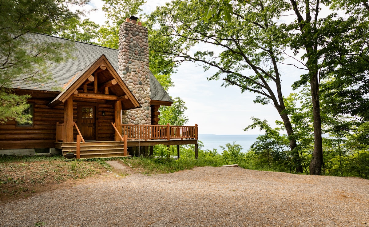 Modern Log Cabin - with Hot Tub & Lake MI Views