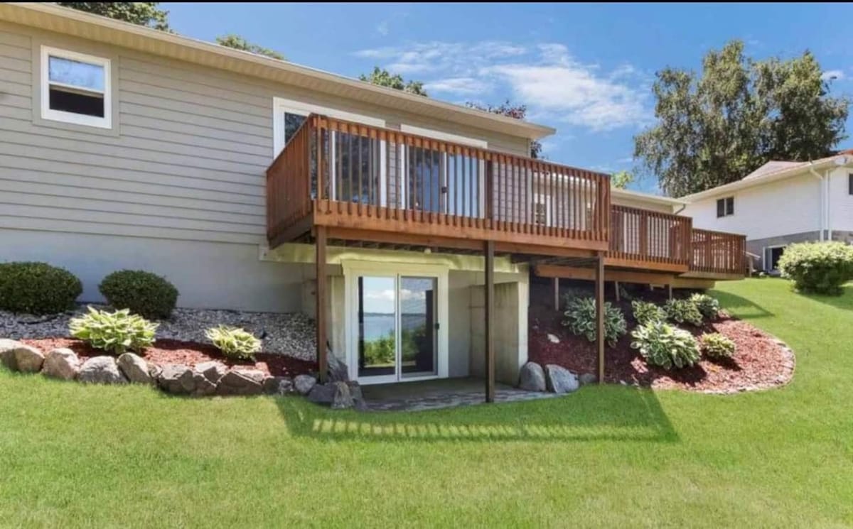 Introducing 'Memory Maker' on beautiful Elk Lake 3 bed, 2 bath cottage, 1680 sqft King size in loft bedroom Queen bed main floor bedroom 2 bunk beds, sofa sleeper in finished basement Sleeps 10 Hard sandy 40ft of shallow crystal clear Elk Lake frontage Central air Washer/Dryer Wifi/Cable/3 TV Mooring for boats Huge deck, grill, patio, fire pit Kitchen, dining for 6 and 3 bar stools Keurig Coffee Maker Stocked Pantry 2 Paddle boards/Kayaks Great fishing Pickleball Close to Golf/Ski/Wineries