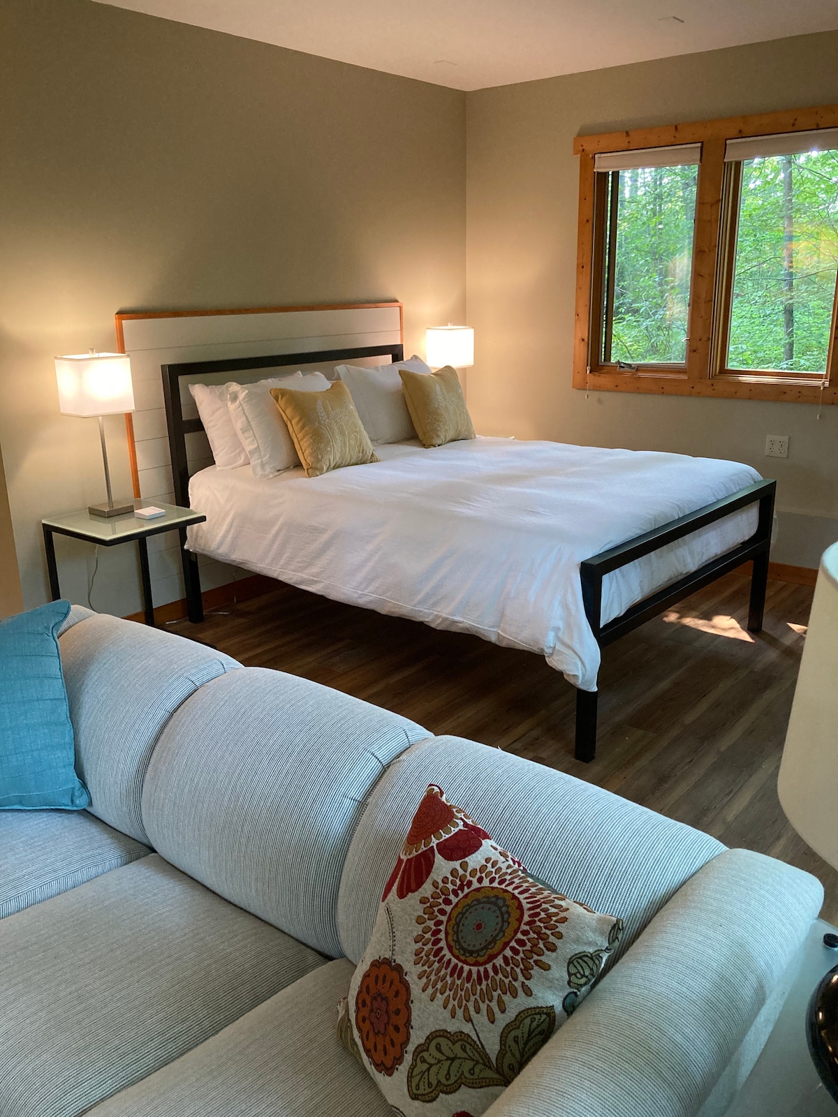 Enjoy four seasons of beauty in a private downstairs guest suite with a bedroom, living room, bathroom, and dining/breakfast nook with a Keurig, microwave and small fridge (no kitchen). Walk out the door to the lakefront where you can lounge in the sun, use the kayaks, and make a fire. Located 3 miles from Interlochen Arts Academy, it is an easy drive to Traverse City, Sleeping Bear Dunes, Crystal Mountain, biking, hiking and running trails and award-winning golf and disc golf courses.