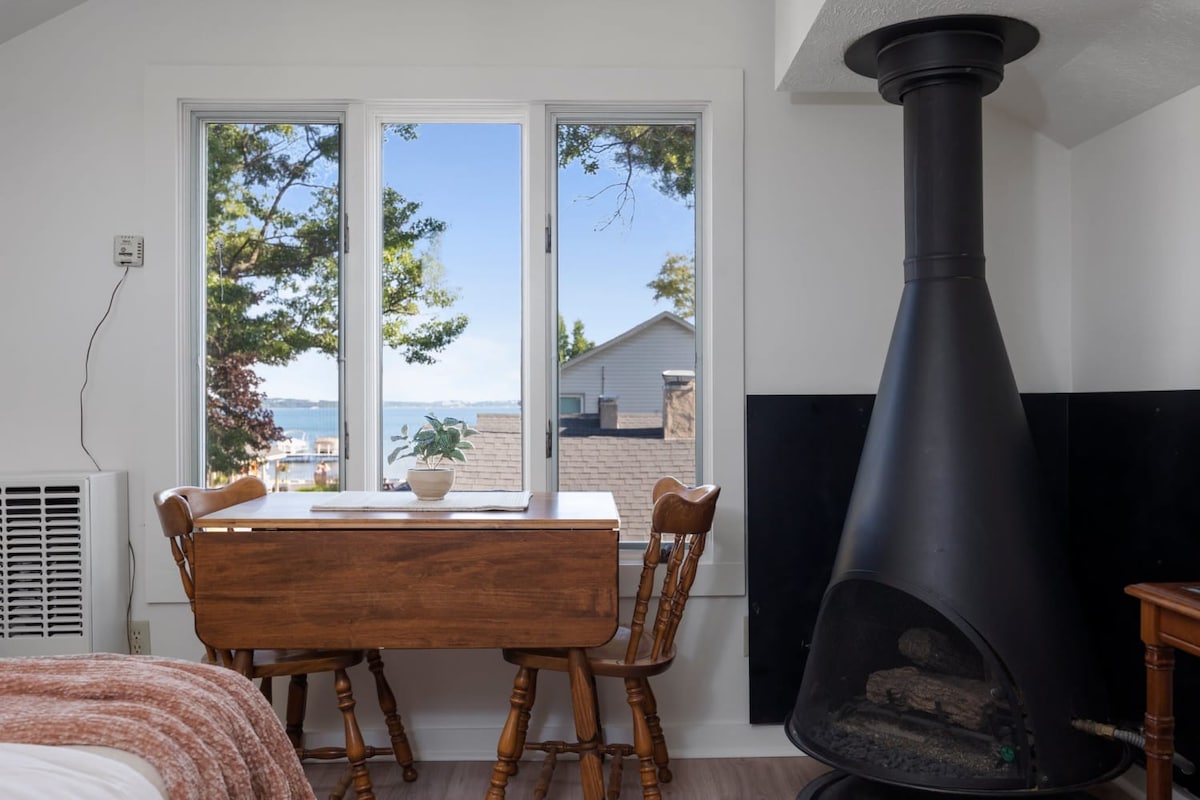 Downtown only 2 miles away! Sleeps 8. Stone Gas Fireplace! Pet Friendly 140 feet of Bay front across the road beach frontage 3 miles from The Commons 25 Miles to the Sleeping Bear Dunes 14 miles to Sutton's Bay Outside Patio/Gazebo 300 feet from the TART bike trail 2 bathrooms Fast WI-FI Our place is close to the City Center and public transport. You’ll love this place because of Location & our views of West Grand Traverse Bay are Amazing! A public beach 200 yards away 3 Awsome Restaurants