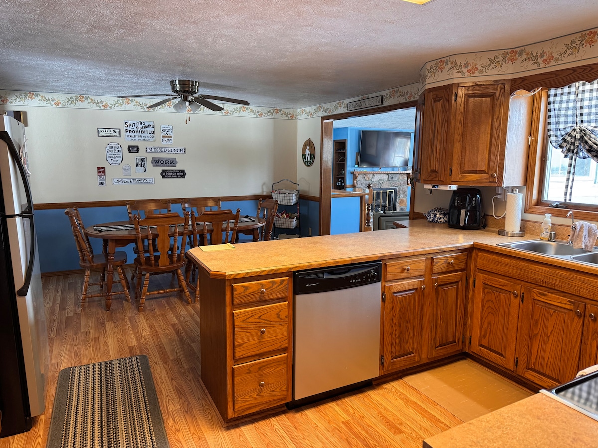 The “Kaneville Lodge” is close to Oil City,Titusville and Franklin. It is near both Oil Creek State Park and Two Mile Run County Park. Hunting, fishing, kayaking, canoeing, biking, hiking opportunities etc... abound in our area.The kitchen is complete with dishes, pots and pans, full sized appliances and many extras so your short or long term stay will be very comfortable.Your well behaved dog(s) is welcome too (fee). Enjoy nature, the woods and maybe even some wildlife while you are visiting.
