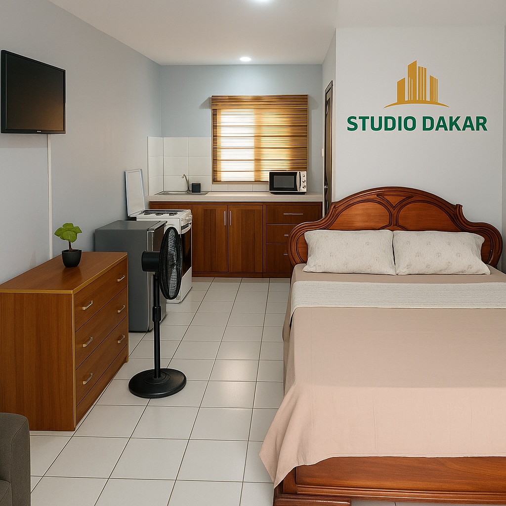 Profitez d'un logement élégant et central dans un hotspot de Dakar. Le mini-studio (Chambre, toilette, balcon) se trouve dans un de nos immeubles récents a Ouakam Cite Avion à proximité du Monument de la Renaissance Africaine. Base idéale pour visiter les sites touristiques: Goree, Lac Rose, etc. L'électricité est exclue du prix. Vous devrez charger séparément. Le montant dépend de votre consommation, mais en moyenne il est estimé entre 1000 et 3.000 fcfa (1.5 a 5euros) par jour.